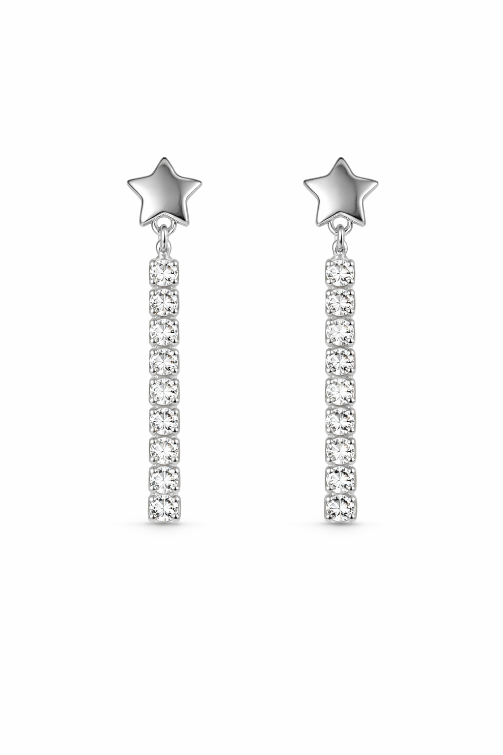 Aros pasantes de estrella con delicados strass colgantes que aportan brillo y movimiento.