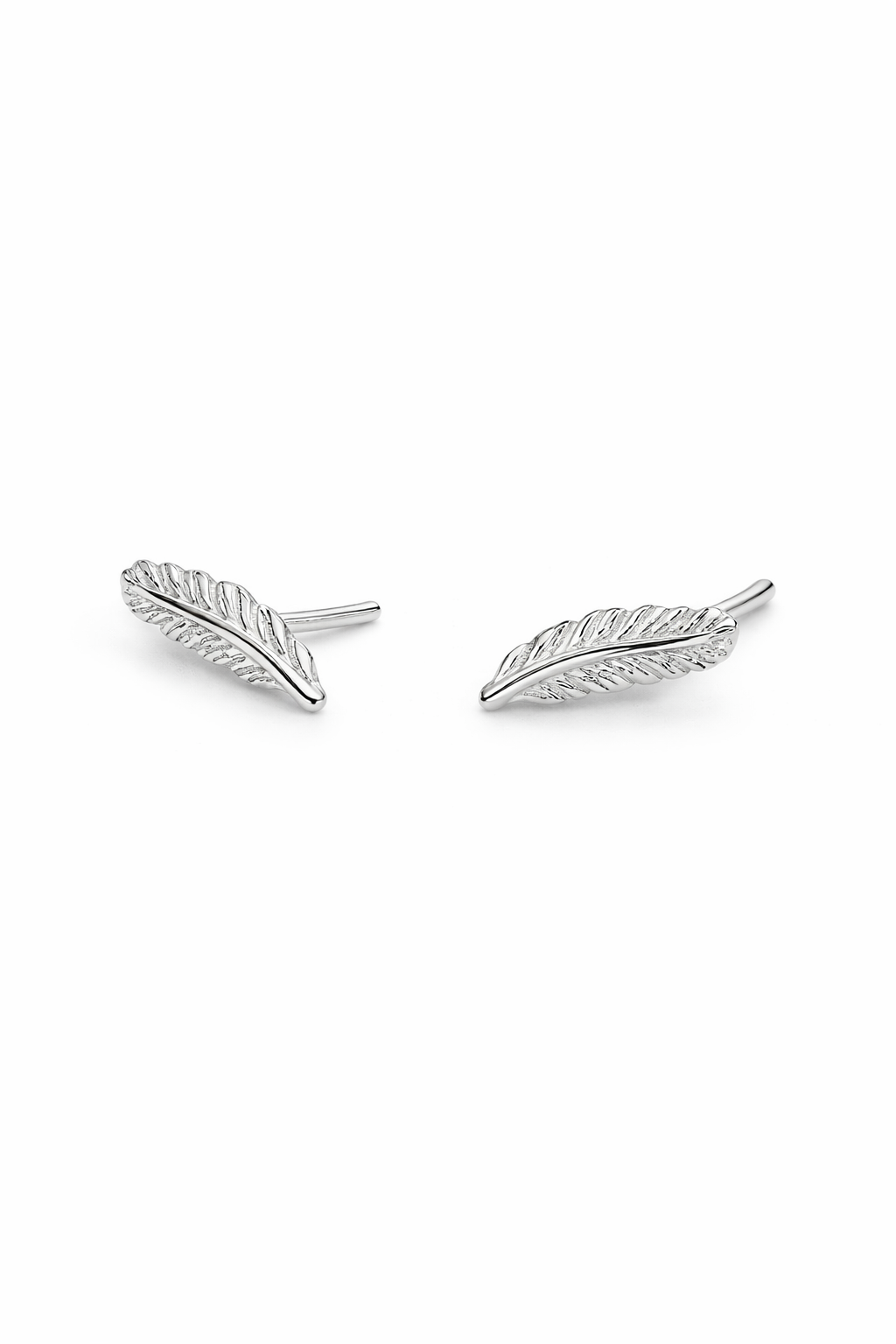 Aros pasantes de pluma de plata 925, con un diseño fino y elegante que simboliza libertad, ligereza y conexión.