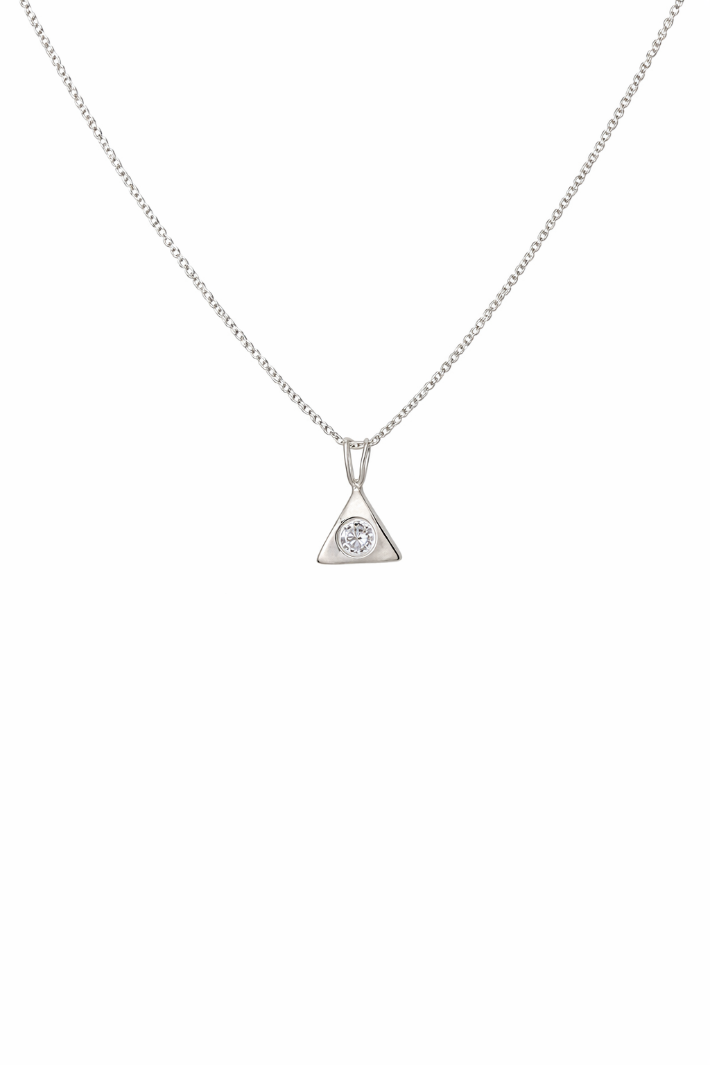 Collar con cadena forcet y dije de triángulo con cubic es la elección perfecta para quienes aman los accesorios minimalistas con un toque de luminosidad. Su figura geométrica transmite modernidad, mientras que el cúbic central captura la luz y realza el escote con un brillo elegante.