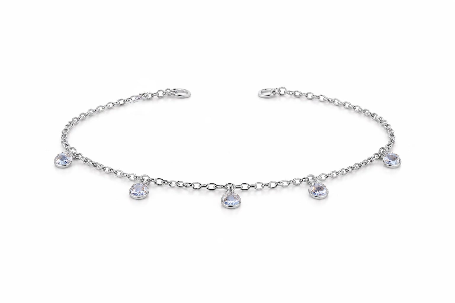 Pulsera punto de luz confeccionada en plata 925, presenta pequeños cristales distribuidos a lo largo de su cadena que capturan la luz con cada movimiento, creando un efecto brillante y sofisticado.